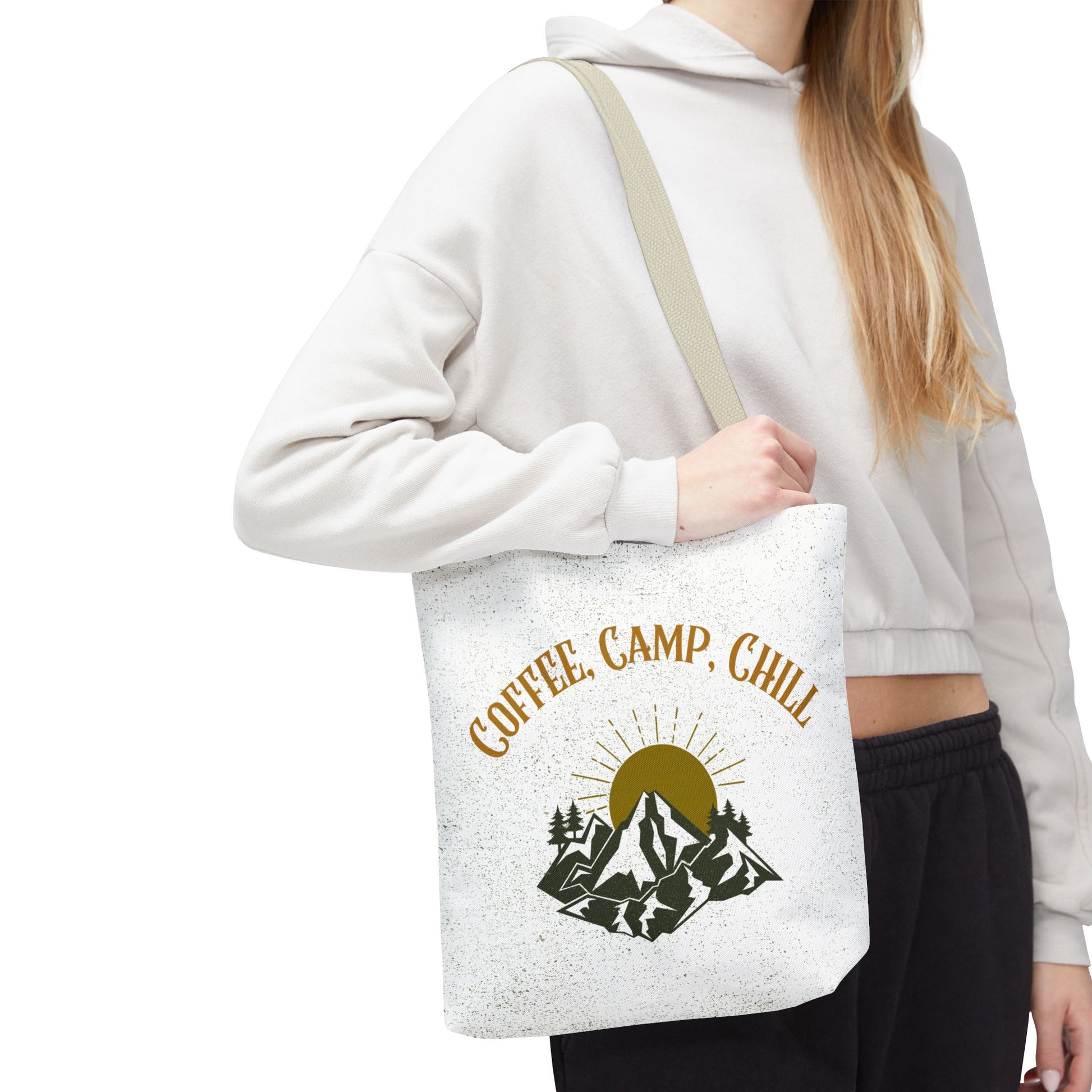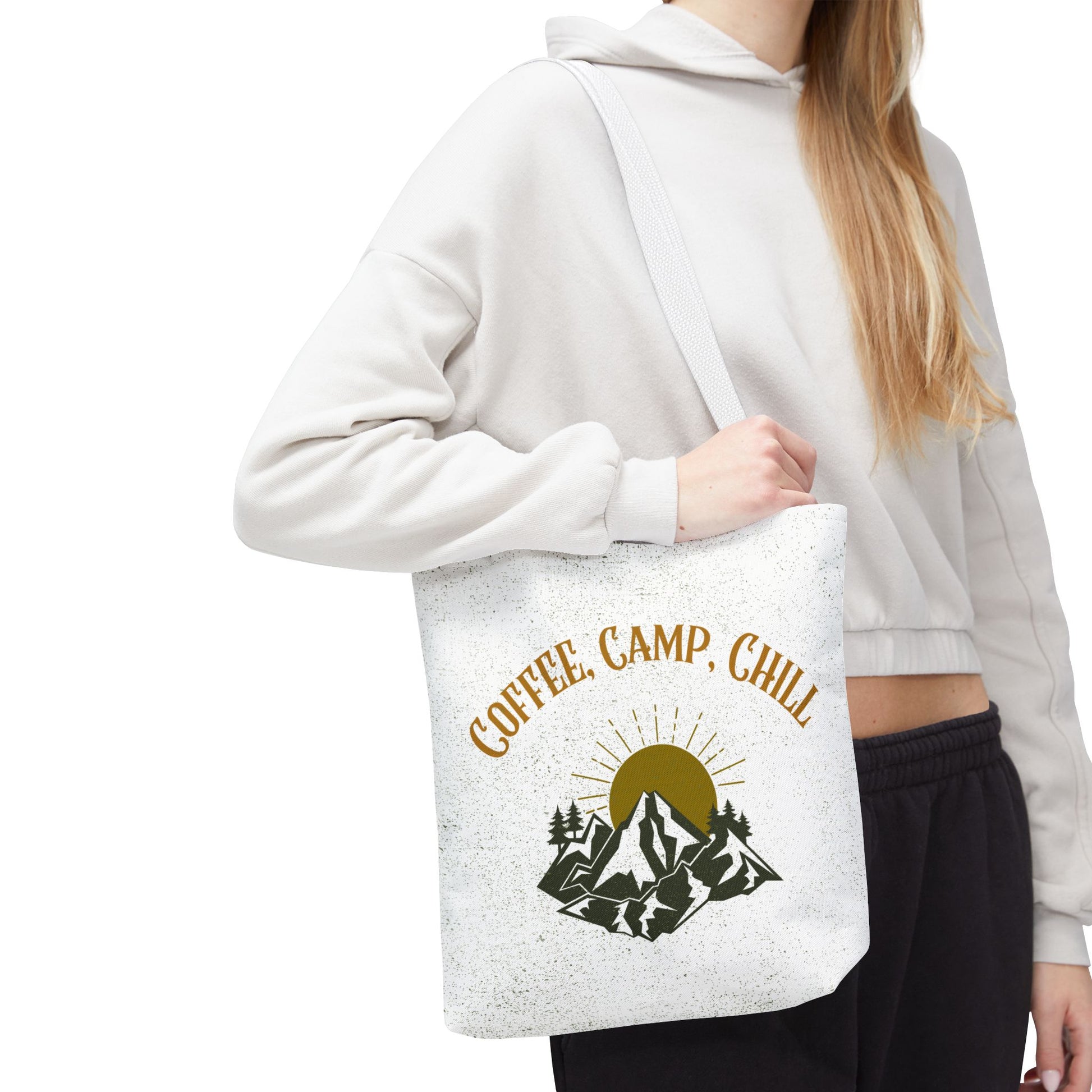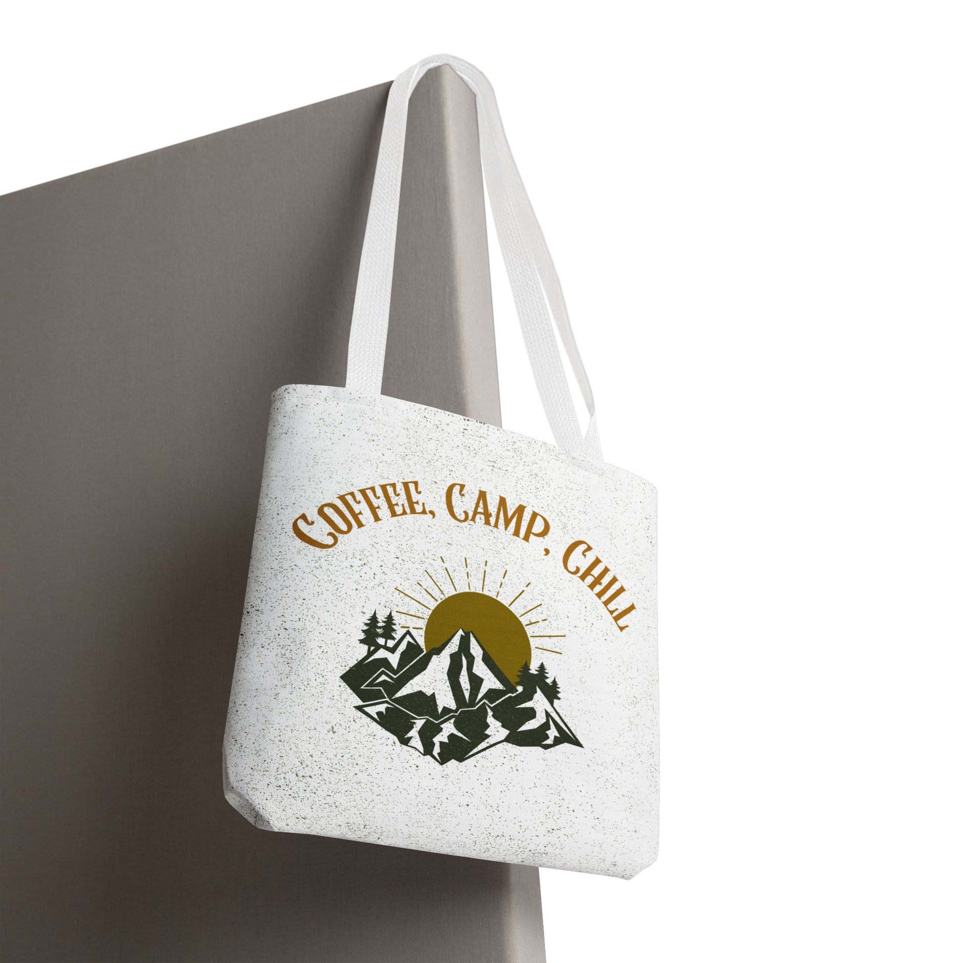 Start every adventure slow and steady with this Coffee, Camp, Chill tote, a bag that blends the warmth of coffee and the calm of a campfire.