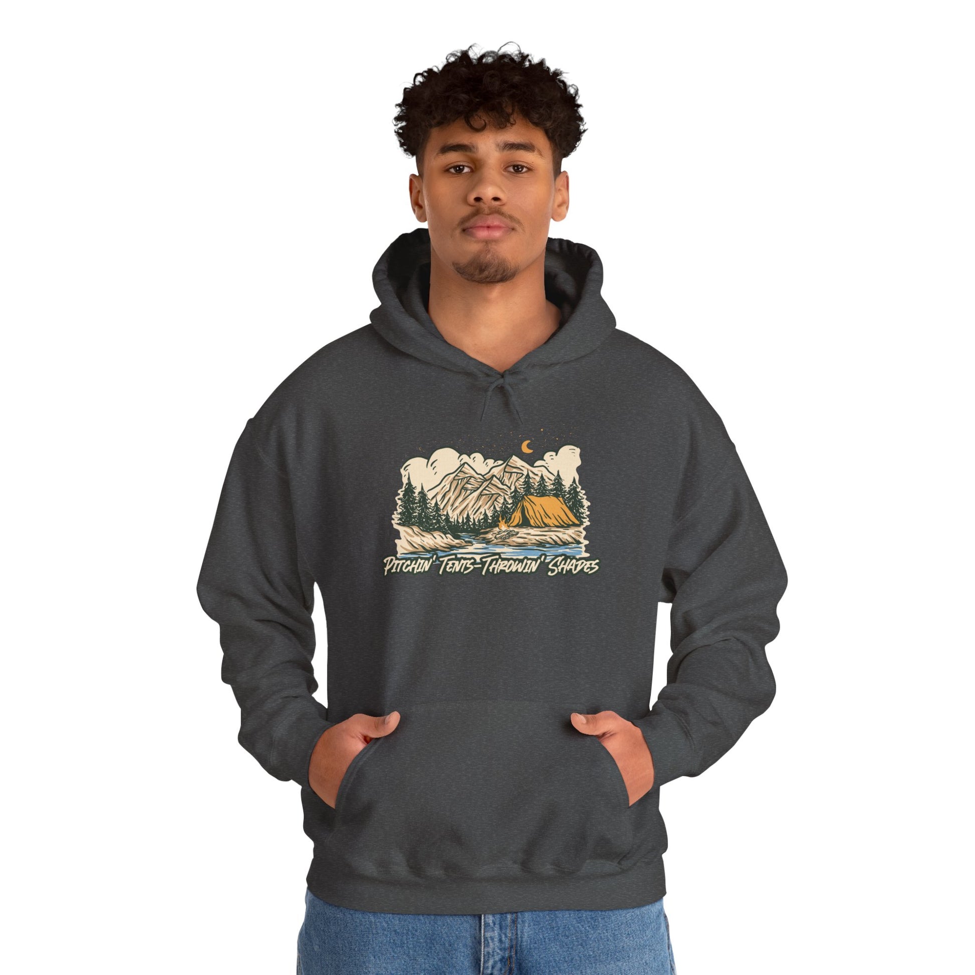 Pitchin Tents Throwin Shades Hoodie – Unisex Outdoor Adventure Sweatshirt, Camping Gear, Nature Lover Gift, Travel and Fall Apparel