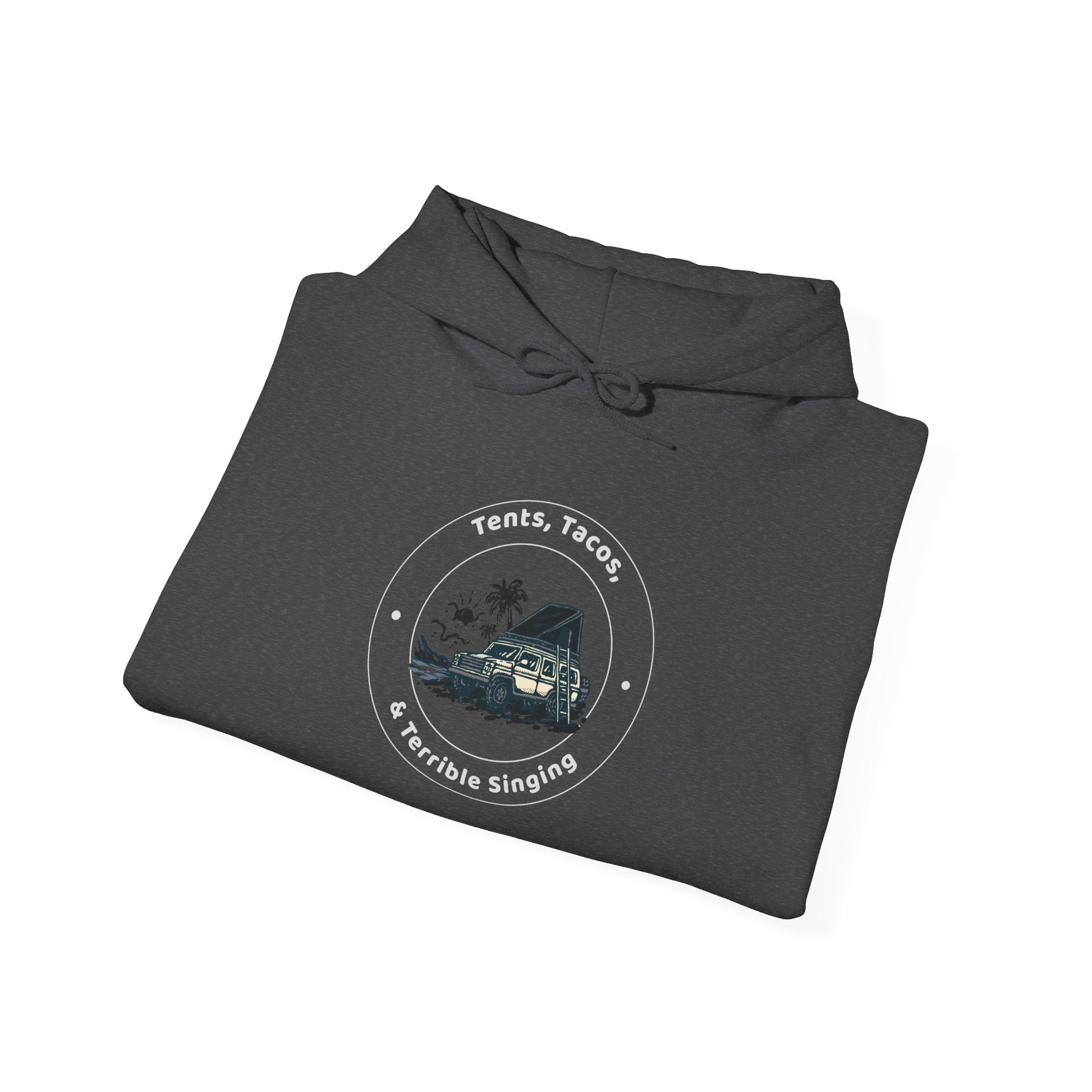 Tents Tacos and Terrible Singing Hoodie - Unisex Camping Sweatshirt, Taco Lovers Gift, Fun Outdoor Apparel, Cozy Casual Hoodie, Taco Tuesday Outfit