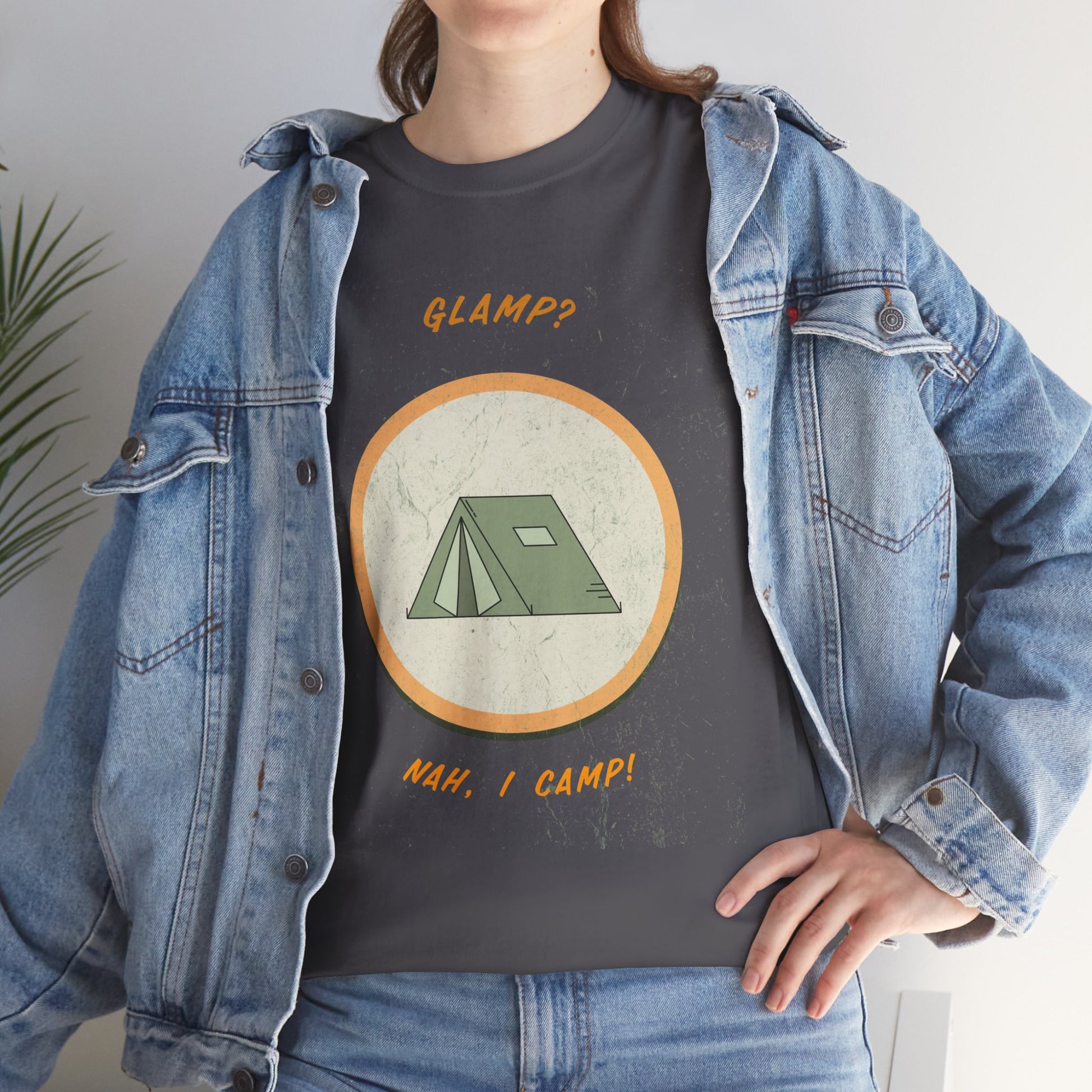 Celebrate your love for glamping and the great outdoors with this cozy Glamp? Nah, I Camp unisex heavy cotton tee — made for campers, travellers, and dreamers at heart.