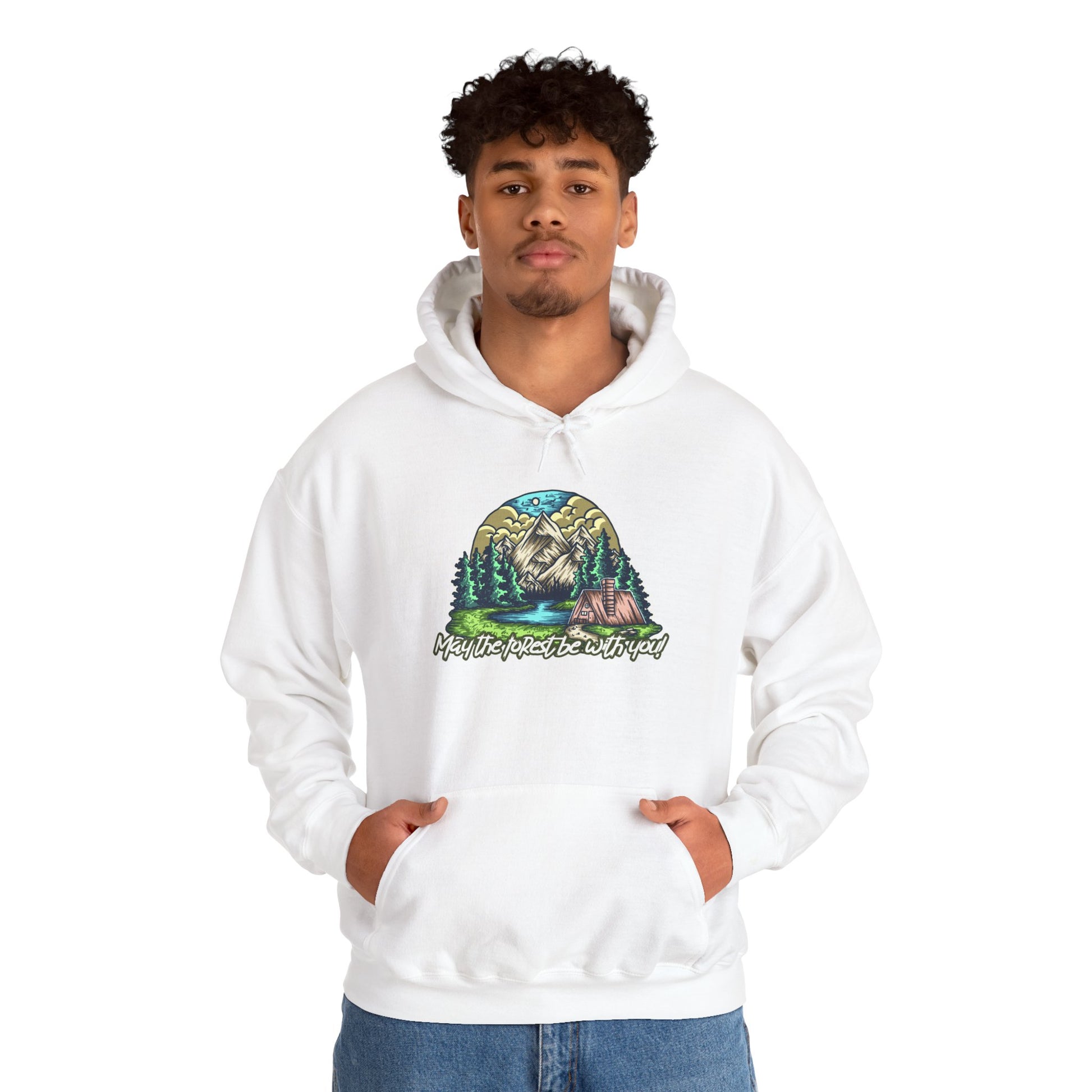 Embrace the outdoors in warmth and style with this cozy May the Forest Be With You unisex hoodie, perfect for campers, hikers, and everyday adventurers.